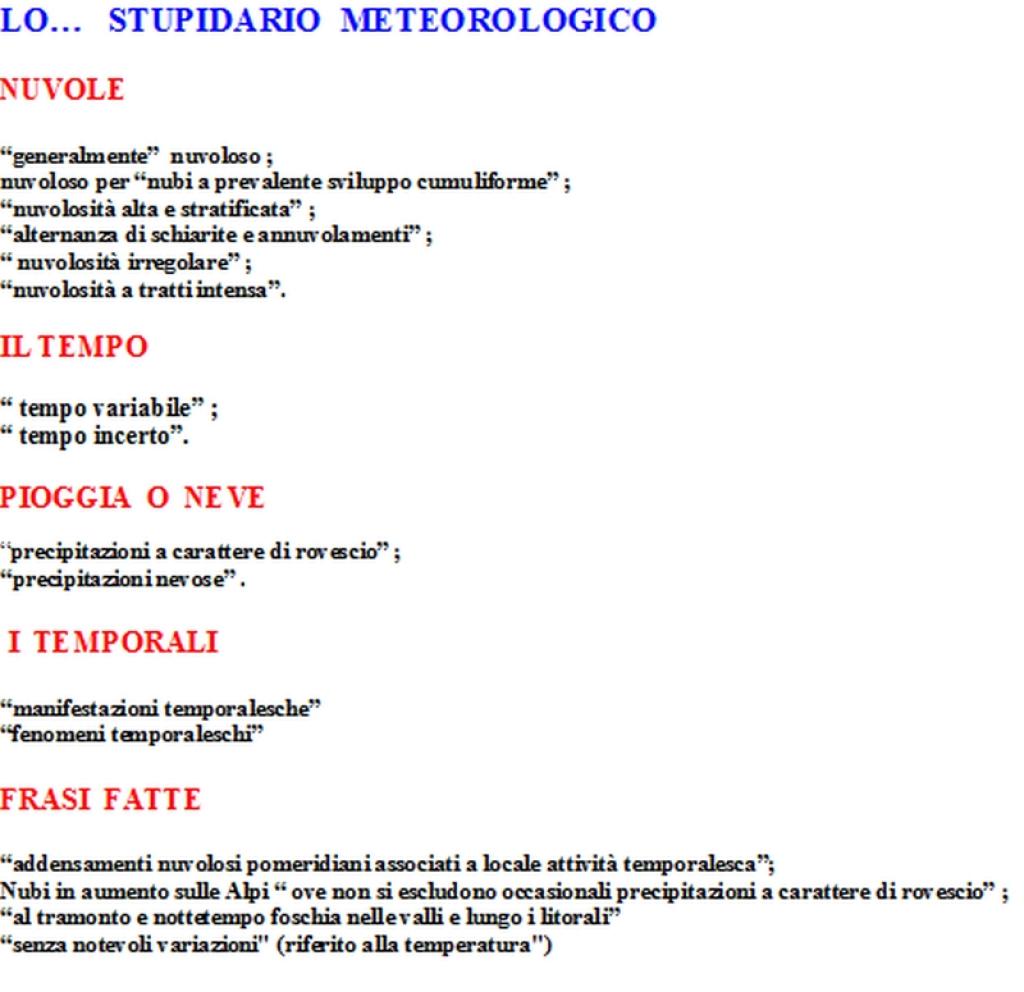 Il massimo della stupidità è però il termine “tempo incerto”. Come dire, io meteorologo non so… come sarà il tempo.