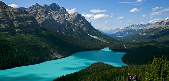 Così azzurro da sembrare dipinto. E anche se sembra uscito da una favola, il Peyto Lake esiste davvero, e non si trova ai Caraibi bensì in Canada, nel cuore del Banff National Park. Basta guardarlo in foto per far venire la voglia di un tuffo, ma qui l’acqua è troppo fredda per farci il bagno. Bisogna accontentarsi di guardarlo da riva o, ancor meglio, da una terrazza che ogni estate viene letteralmente presa d’assalto dai turisti.