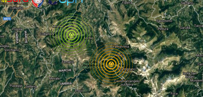 DOPPIA SCOSSA DI TERREMOTO DI Ml 3.2 E Ml 2.3 NELLA ZONA TRA USSITA (MC) E MONTE CAVALLO (MC) NELLE MARCHE