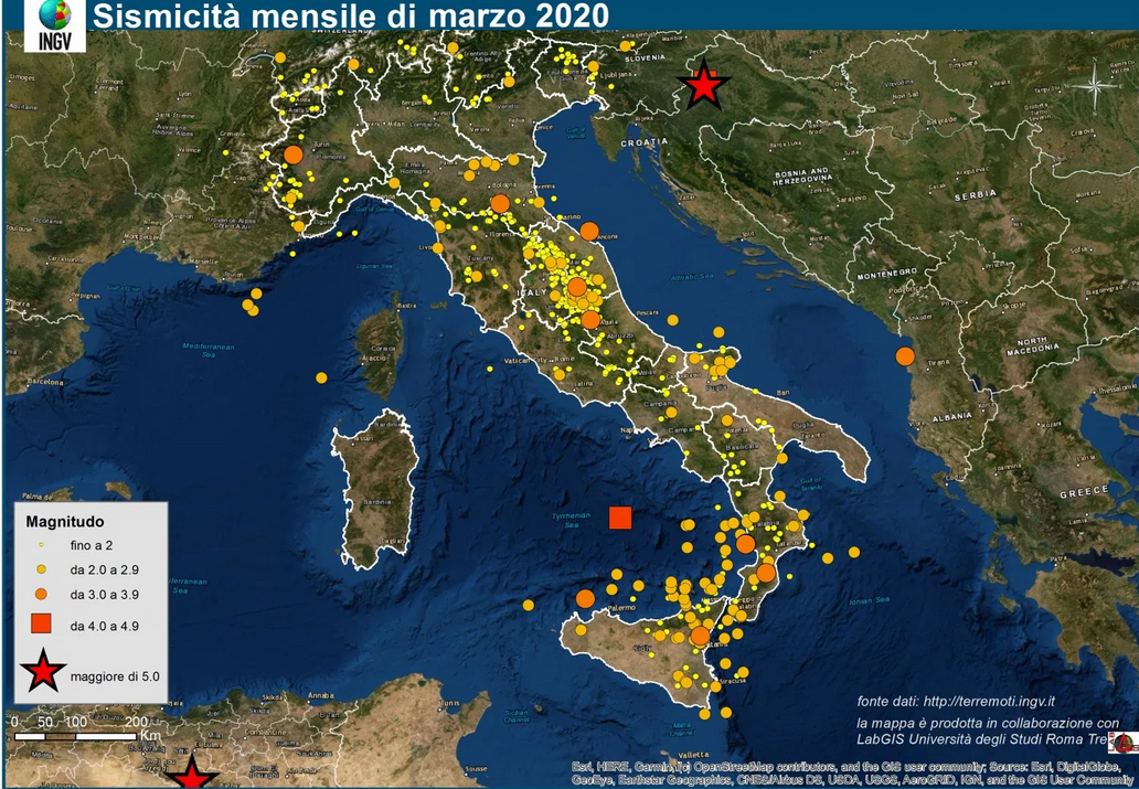 INGV: ecco le mappe della sismicità mensile di Marzo 2020