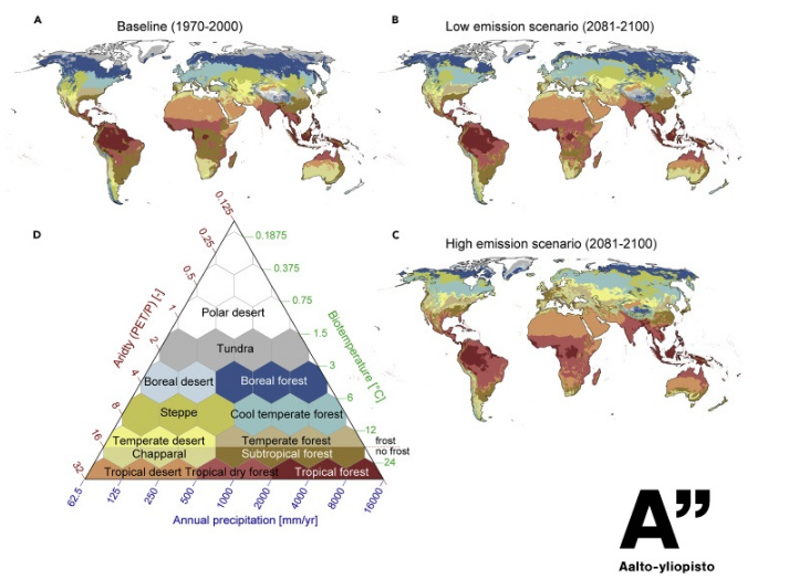 I ricercatori stinano che «Se le emissioni di anidride carbonica vengono tenute sotto controllo, la più grande zona climatica del mondo di oggi – la foresta boreale, che si estende attraverso il Nord del Nord America, la Russia e l’Europa – entro il 2100 si ridurrebbe dagli attuali 18,0 a 14,8 milioni di Km2. Se non fossimo in grado di ridurre le emissioni, rimarrebbero solo circa 8 milioni di Km2 della vasta foresta. Il cambiamento sarebbe ancora più drammatico in Nord America: nel 2000 la zona copriva circa 6,7 milioni di Km2, entro il 2090 potrebbe ridursi a un terzo».