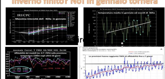 Non ne siamo certi (le previsioni per definizioni non sono “certezze”!) ma abbiamo buoni motivi per ritenere che gennaio ci riserverà almeno 2-3 fredde soprese, come avvenne un anno fa. Perché citiamo gennaio 2021? Perché era presente la Niña, la quale agevola le irruzioni di aria polare. Nei 12 eventi verdicatesi dal 1980 ad oggi, la la Niña ha reso gennaio più freddo del normale 8 volte su 12.