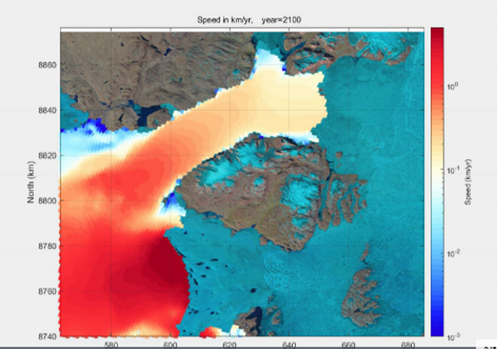 L’animazione mostra il ritiro del ghiacciaio Zachariae Isstrøm dal 2007 al 2100 (Fonte: Shfaqat Abbas Khan, DTU Space, Denmark)