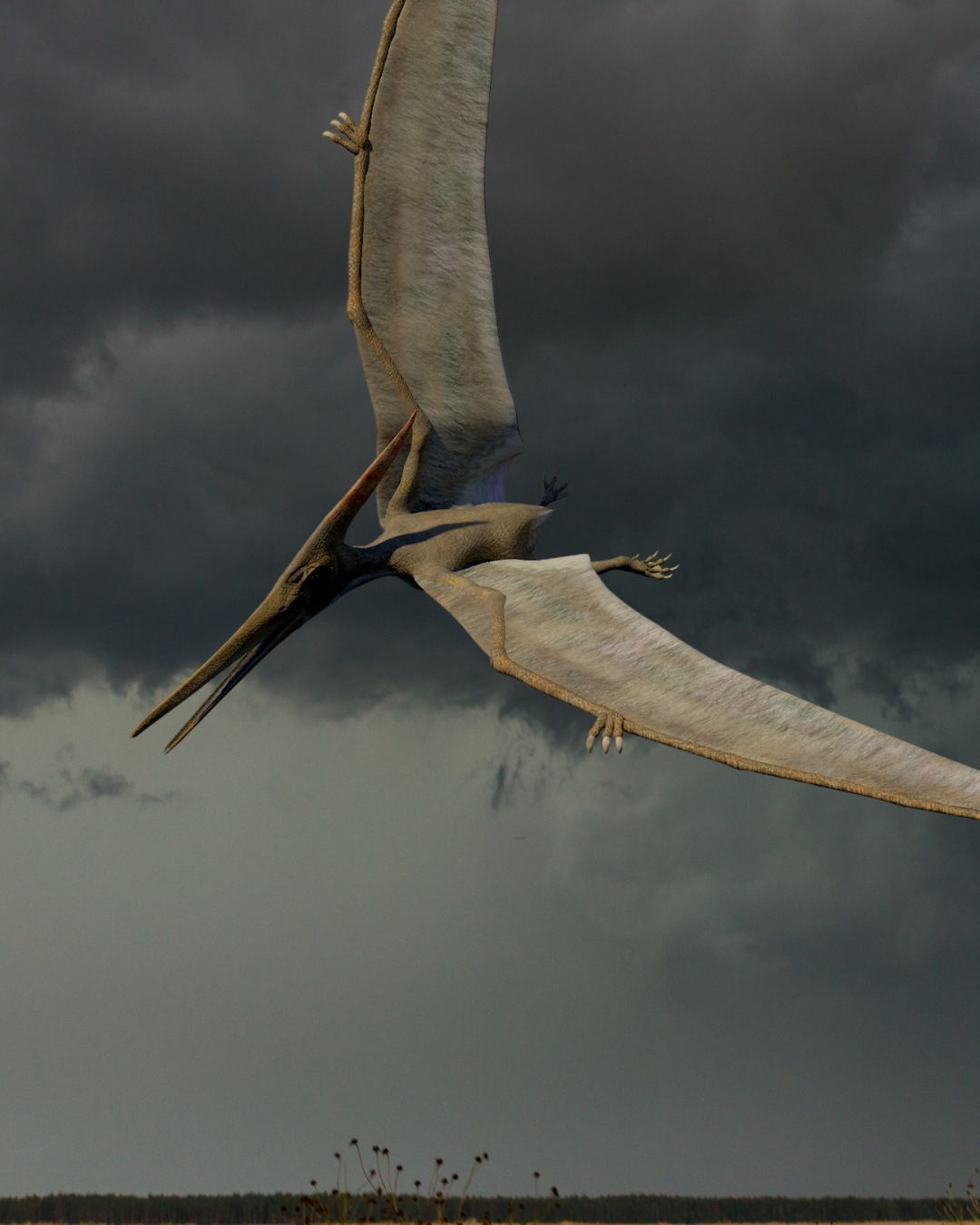 Le tempeste violente sono sempre state una sfida per uomini e animali. Oggi sappiamo che anche nel Giurassico potevano avere conseguenze drammatiche: circa 150 milioni di anni fa, potenti raffiche di vento strapparono le ali fragili di due giovani pterosauri (Pterodactylus antiquus), facendoli precipitare in una laguna fangosa di Solnhofen, in Germania. I loro scheletri, conservati in modo eccezionale nei calcari della regione, mostrano fratture oblique dellโomero, simili a quelle che ancora oggi subiscono uccelli e pipistrelli quando vengono sorpresi da forti correnti durante il volo.