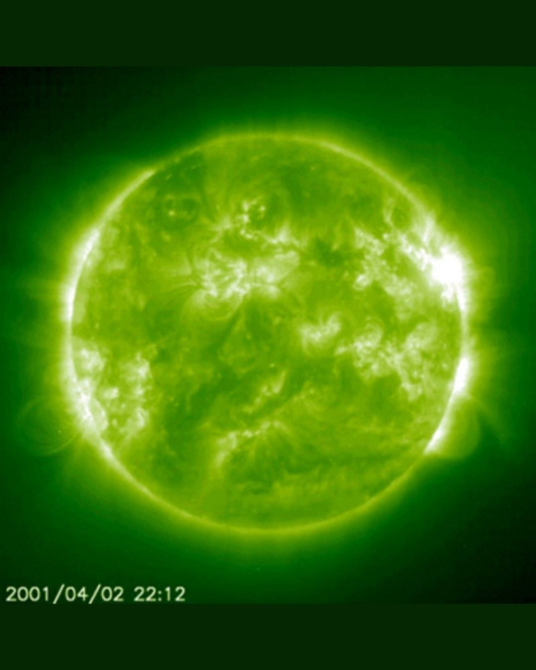 Tra queste ricerche ci sono anche le attivitร  dellโ€™INGV, che contribuisce al monitoraggio dello Space Weather e allo studio dei fenomeni solari per comprenderne lโ€™impatto sul nostro pianeta. Nell’immagine il brillamento solare del 2 aprile 2001 (crediti SOHO/EIT (ESA e NASA) )