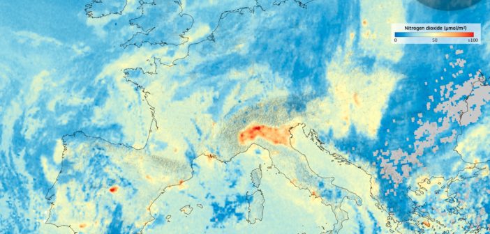 La prima mappa della missione del satellite di Copernicus mostra il pericoloso inquinamento della Pianura Padana, dove la qualità dell’aria è fra le peggiori d’Europa.