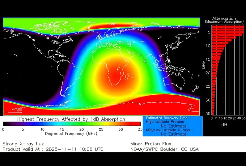 Un brillamento solare molto potente si รจ manifestato alle 11:04 di oggi, 11/11/2025. Il fenomeno potrebbe causare blackout nelle telecomunicazioni sull’Europa centrale, sul Mediterraneo (quindi anche sull’Italia) e nel nord Africa.