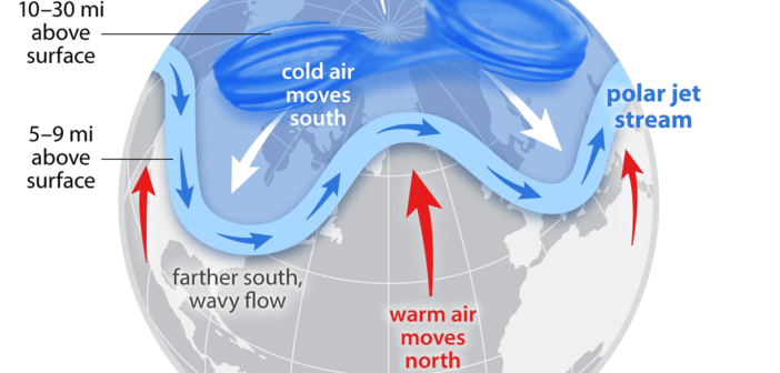 Si può semplicemente immaginare il Vortice Polare come un “muro” che ruota sopra e attorno alle regioni polari, dalla superficie alla stratosfera (oltre 50 km di altezza), contenente al suo interno l’aria polare fredda.