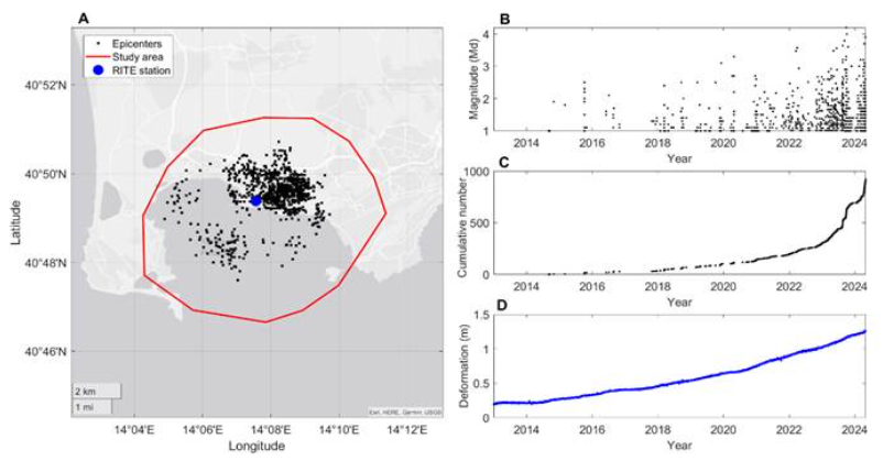 Un nuovo modello per la previsione probabilistica dei terremoti nei Campi Flegrei integra, per la prima volta, i dati sulla deformazione del suolo nei modelli sismologici statistici