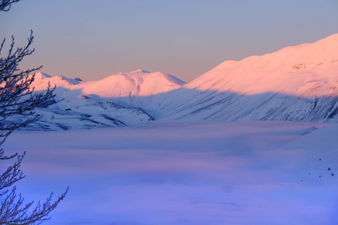 Questa particolare conformazione geomorfologica, favorisce il fenomeno dell’inversione termica che, tipicamente in inverno ma non solo, in condizioni di alta pressione e cieli sereni, dove il raffreddamento del suolo per irraggiamento intrappola l’aria fredda a bassa quota, crea uno “strato-tappo” che impedisce il rimescolamento verticale, mantenendo temperature più basse in pianura rispetto alle montagne circostanti. Questo, sull’altopiano di Castelluccio, per chi c’è stato, in qualsiasi stagione, in presenza soprattutto di cielo sereno o di nebbia al piano, comporta differenze di temperature vistose, a volte davvero pazzesche tra l’abitato del paese di Castelluccio e i piani circostanti