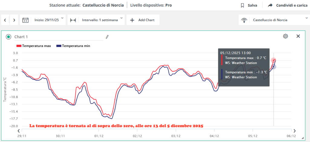 Tra le fine di novembre e i primi giorni di dicembre 2025, le temperature in mezzo al Pian Grande, non sono mai riuscite a superare gli 0°C: un evento non così raro, in inverno, il quel luogo, anzi, ma che ora possiamo monitorare in tempo reale