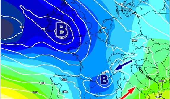 Con il passaggio del ciclone Harry siamo entrati in una fase meteorologica particolarmente dinamica in cui a condizionare lo stato del tempo sul Mediterraneo saranno le correnti perturbate atlantiche. Si è infatti materializzato quel canale depressionario, esteso dall’isola di Terranova alle Baleari, lungo il quale si muoveranno diversi sistemi perturbati destinati ad interessare anche la nostra penisola. L’ultimo anello della catena di cicloni è quello che attualmente è posizionato a ovest del Canale della Manica e che, con una fitta rete di isobare concentriche attorno a un minimo di ben 958 hPa, sta estendendo la propria influenza anche al settore occidentale del nostro bacino dove entro domani, sabato 24 gennaio, si formerà un minimo secondario di 990 hPa nei pressi del Golfo del Leone (fig. 1).