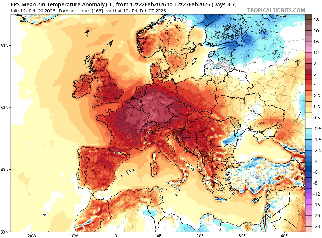 Perché per la prima volta dall’inizio dell’anno ci siamo trovati, proprio nell’ultima analisi pubblicata, a parlare dell’imminente fase anticiclonica che andrà a rompere l’egemonia del flusso perturbato atlantico e a garantire una fase non solo stabile, ma anche molto mite per il periodo sul Mediterraneo centro-occidentale e su buona parte dell’Europa, dove nel corso della prossima settimana le temperature in prossimità del suolo si porteranno su valori tra i 4 e i 9 °C sopra la media su un intervallo di almeno cinque giorni. Queste cartine le conosciamo ormai molto bene perché accompagnano le analisi sulle linee di tendenza che abbiamo commentato anche in altri periodi dell’anno e soprattutto in estate, quando a queste anomalie termiche corrispondono temperature massime in prossimità del suolo spesso superiori ai 35-36 °C e quindi si traducono in condizioni ambientali che vanno a definire i contorni di un’onda di calore. Queste cartine sono diventate note anche perché, proprio durante l’estate scorsa, sono state bersaglio di coloro che accusano i meteorologi e i climatologi di fare terrorismo.