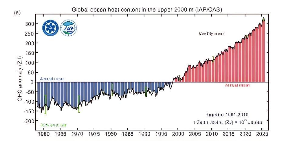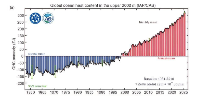 Nel 2025 gli oceani del pianeta hanno raggiunto un nuovo record di calore accumulato