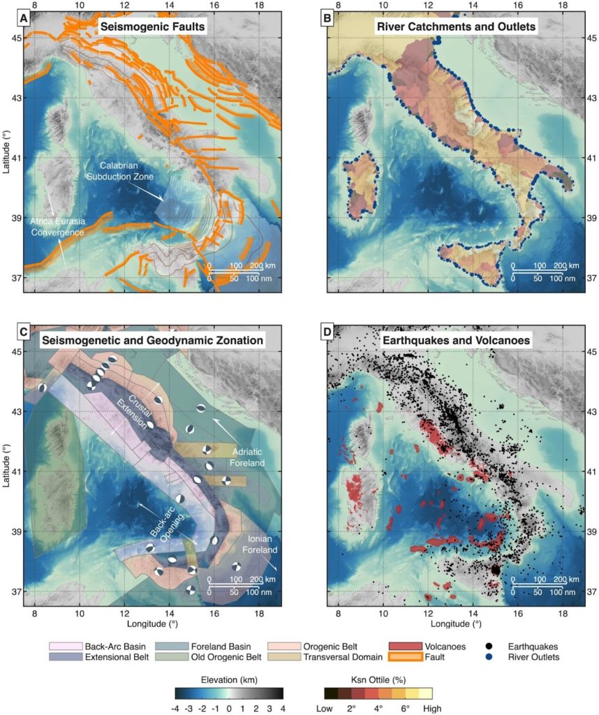 La ricerca ha analizzato oltre 2.700 testate di canyon sottomarini (ovvero le zone più superficiali e vicine alla costa) attraverso un modello di apprendimento automatico che integra dati batimetrici, sismicità strumentale, deformazioni crostali e tassi di deformazione misurati tramite geodesia satellitare. I risultati mostrano come l’attività tettonica e la vicinanza alle foci fluviali rappresentano i principali fattori che guidano l’arretramento e l’evoluzione di queste forme del paesaggio sottomarino.